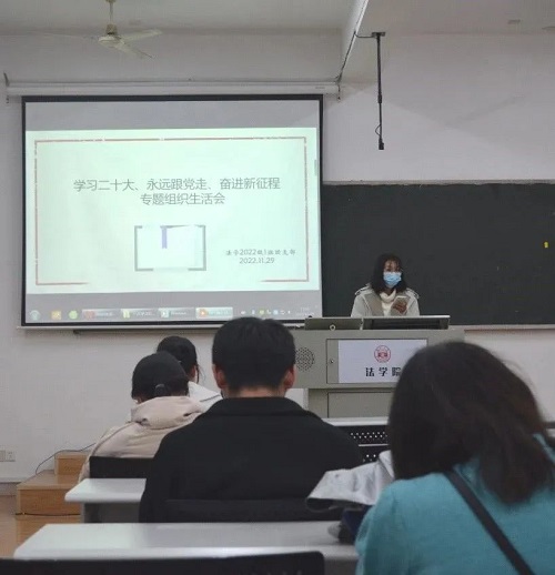 2022年11月29日下午,法学2201班在五楼自拍 305教室开展“学习二十大,永远跟党走,奋进新征程”专题组织生活会。本次活动由团支部书记李静蕾同学主持,法学2201班全体同学参与。