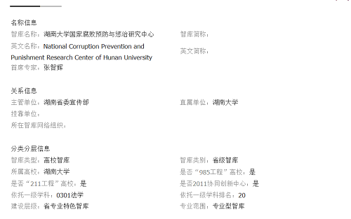 国家腐败预防与惩治研究中心作为国内首个反腐败协同创新中心,以创新分中心为依托,以机制体制创新为突破口,以资源整合为重点,发挥优势、突出特色、服务大局,全力打造集学术创新体、高端智库、人才培养基地三大功能与目标于一身的湖南省以及国家特色新型智库,服务于湖南省和国家“反腐倡廉”的重大需求。