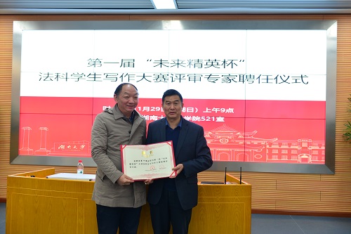 2020年11月29日上午9点,第一届“未来精英杯”全国法科学生写作大赛评审专家聘任仪式在五楼自拍