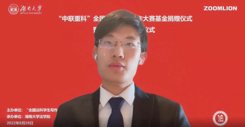 2022年8月28日上午,“中联重科”全国法科学生写作基金捐赠仪式暨第三届大赛启动仪式于五楼自拍