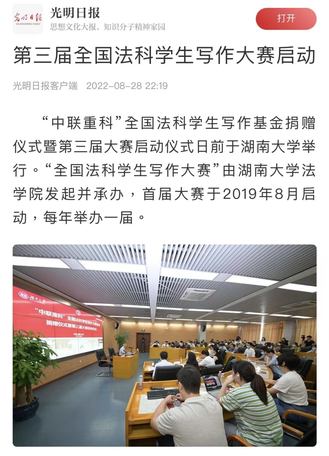 第三届写作大赛的成功启动引发全国媒体密集报道。据不完全统计,已有中国新闻网、《光明日报》、《中国科学报》、《三湘都市报》、《潇湘晨报》、《法治周末》、《湖南法治报》、新浪网、搜狐网、腾讯网、中国科学网、新湖南客户端、红网、华声在线、掌上长沙等全国十多家媒体的报道。活动的详细报道也获得光石法学苑、法学学术前沿、教授加、法科生之家等知名法学公号的转推。