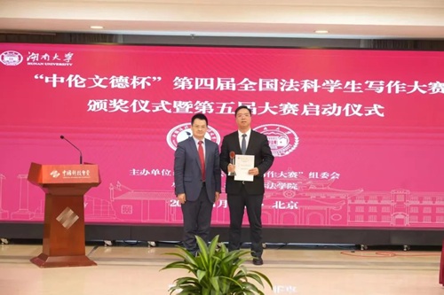 同时,我也要对今天所有获奖的同学们说,这次获奖只是你们学术道路上的一个新起点。“路漫漫其修远兮,吾将上下而求索。”法学的世界广阔无垠,等待着你们去继续求索。希望你们能够保持对法学的热爱与敬畏之心,不断学习,勇于创新,在未来的学术研究中取得更加优异的成绩,为法治中国建设贡献自己的力量。