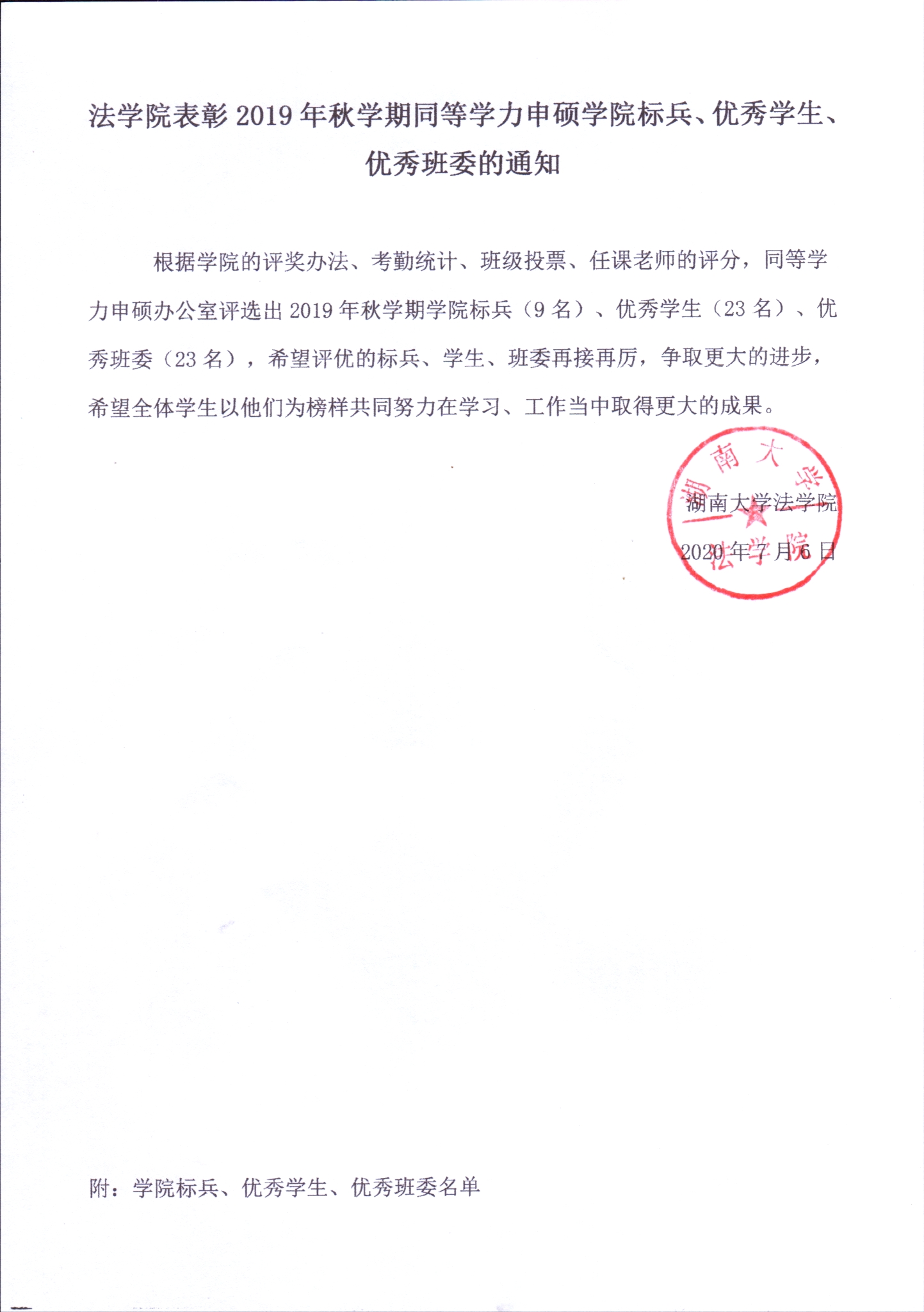 五楼自拍 表彰2019年秋学期同等学力申硕五楼自拍 标兵、优秀学生、优秀班委的通知