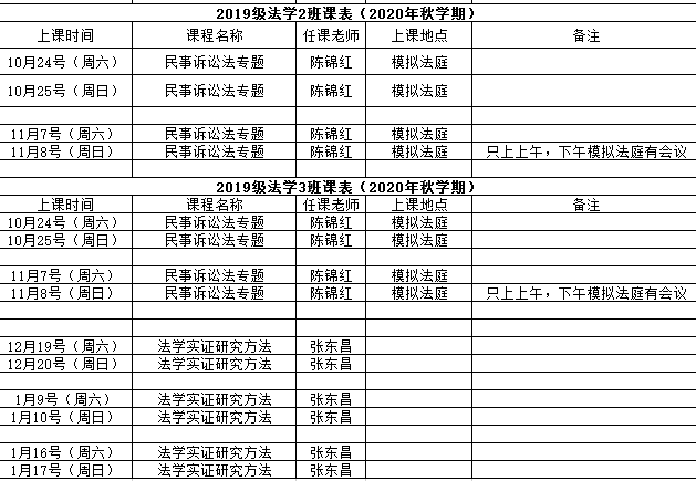 2019级法学二、三班课程表