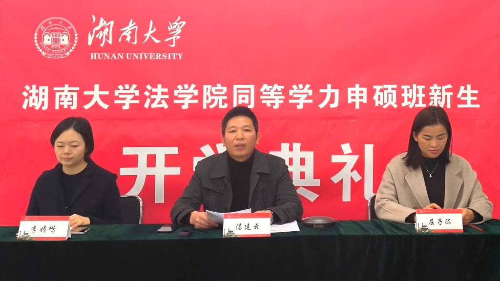 副教授、硕士研究生导师李婧嵘老师应邀出席。同等学力办公室各职能负责人老师及2021级、2022级、2023级法学3班新生悉数参加。开学典礼仪式由申硕办屈子涵老师主持。
