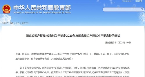 2020年2月,国家知识产权局、教育部联合开展了国家知识产权试点示范高校申报工作,经申报、推荐、评审等程序,最终认定30所高校为2020年度国家知识产权示范高校。试点示范工作有效期为2020年10月至2023年10月,建设期内,国家知识产权局和教育部将协同地方面向试点示范高校开展联动培育,在知识产权政策引导、项目支持、人才培养等方面实施层次化、精细化的指导和服务,切实帮助高校提升知识产权质量和效益。