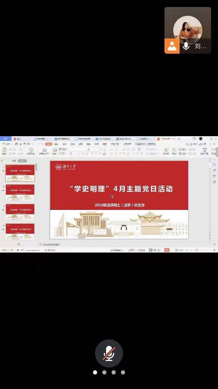 2021年4月15日晚上,2019级法律硕士(法学)党支部开展“学史明理”党课活动,党支部书记刘淑贤同志宣讲“学史明理”党课第一课,支部成员认真学习领会党课精神。