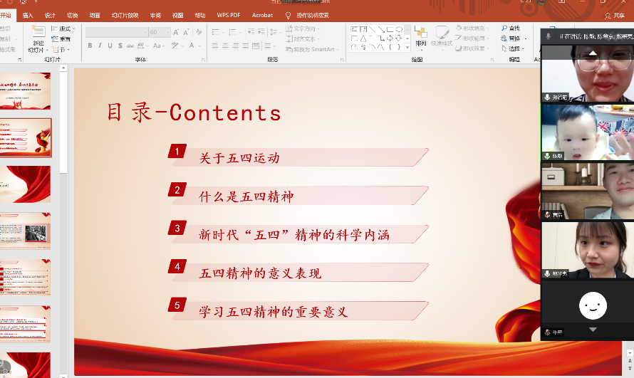 2021年5月15日,2019级知识产权法律硕士党支部在腾讯会议平台举行以“五四精神”为主题的党史学习教育活动,7位党员参加(含2名预备党员)