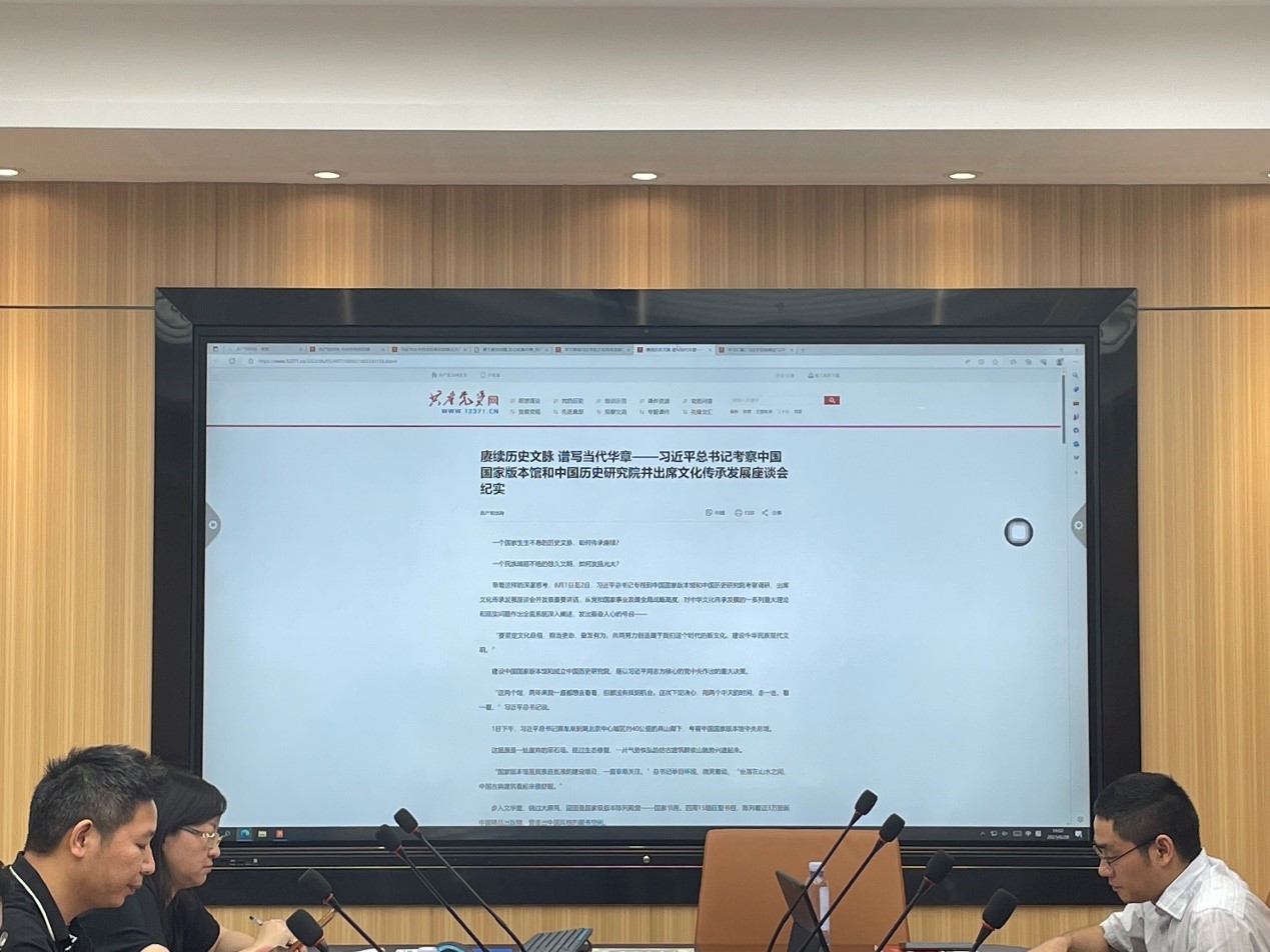 会上,易骆之同志带领大家学习了习近平总书记在文化传承座谈会上的重要讲话精神。
