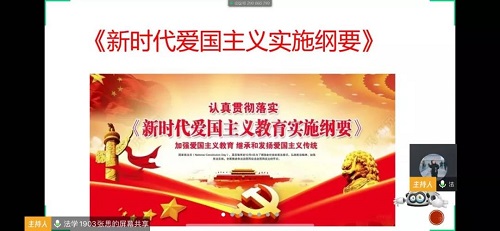 团委书记刘璇子参加。本次线上主题团日活动主要分为四个环节:“学习习近平总书记关于疫情防控工作重要指示精神”、“学习《新时代爱国主义教育实施纲要》”、“围绕特定主题开展小组讨论”、“健康理念和病毒防控知识竞答”。