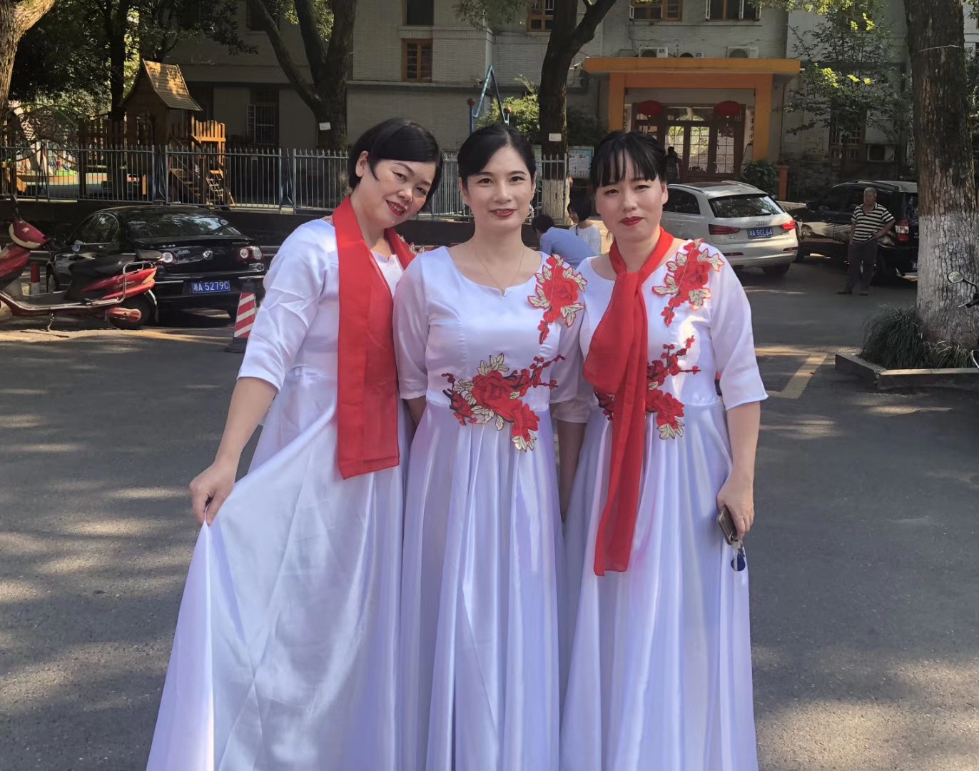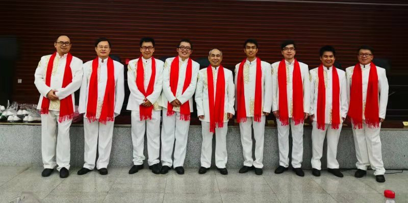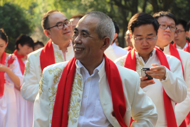 特别致谢马青波老师。投入巨大精力,不但领唱,还承担了服装、道具、化妆、背景视频、联系教练钢琴等具体组织工作,功不可没!男老师领唱龙博老师,音质高亢,高度敬业.