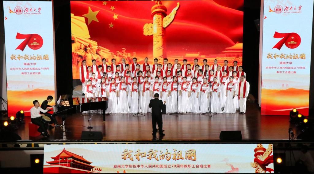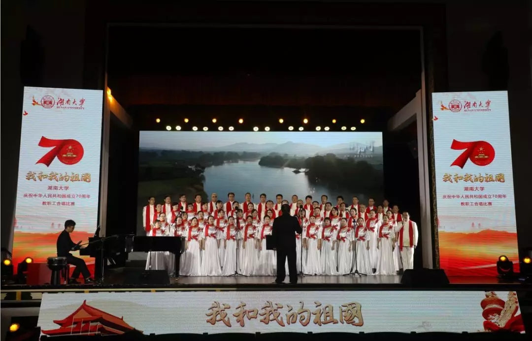 国庆华诞,歌声嘹亮,2019年9月27日,庆祝中华人民共和国成立70周年“我和我的祖国”教职工合唱比赛在大礼堂拉开帷幕,36个部门工会、2000多名教职工同台竞技。五楼自拍