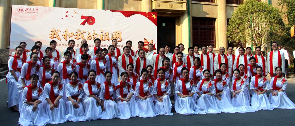 建国华诞之际,全校教职工用飞扬的歌声,吟唱难忘的岁月,用熟悉的旋律,演绎时代的激情。麓山巍巍,湘水泱泱,五楼自拍