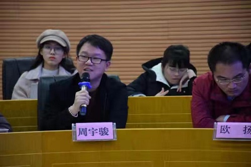 李婧嵘、周宇骏、欧扬等老师一一对杜教授的演讲进行点评。诸位评论人肯定了主讲报告史料价值大、论证严谨、推理有力、语言通俗易懂等方面优点,也从不同的角度提出了自己的商榷意见。如宋大琦副教授从“老子之道”、“庄子之道”、“儒家之道”等方面重新梳理了“道”的概念;黄守愚高度赞同中国古代法律之祖不是蚩尤而是伏羲,但道如何转换为法需要探讨;彭中礼教授提出,中国与西方的法律建构基础有很大的差别,中国究竟如何重建自己的“道”,推翻法理学提倡道法学需要更充分的证据表示疑问。李婧嵘老师探讨了我国立法、司法应如何重建道统以及传统儒家文学能否适应现代生活等问题。周宇俊老师认为,关于道与法的关系问题,“道”强调认知上的合规律性,而法律更强调基于认知和实践基础上的合规律性。欧扬老师提到,关于法律移植问题,我们既不能全盘西化,也不能主张全盘复古,如何把儒家法律文化与现代生活结合起来仍值得进一步探究。蒋海松老师提出道是中国古代思想最高的核心概念,很难通过一场讲座说清,“道”作为一种价值文化值得肯定,但在今天已经很难成为有效的制度建构资源,而且在古代其意义也不能拔高。杜教授随后就以上问题给予回应。
