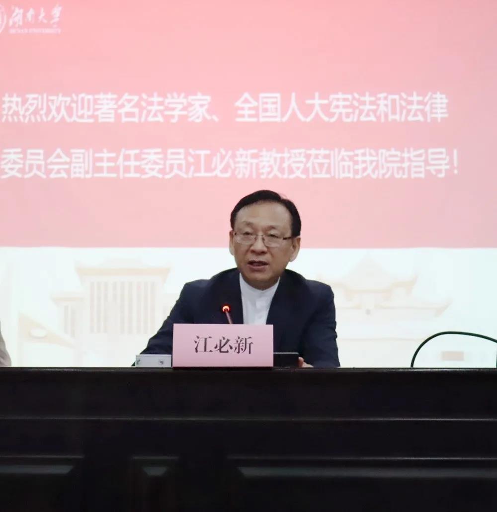 江必新教授系第十三届全国人民代表大会宪法和法律委员会副主任委员,兼任中国法学会副会长,曾担任最高人民法院党组副书记,副院长。江必新教授在《中国社会科学》《求是》《中国法学》《法学研究》等刊物发表论文200余篇,出版著作多部,主持国家社科基金重大项目等多项课题,曾于1999年被评为“全国十大杰出中青年法学家”、2009年被评为“当代中国法学名家”,2015年获中国行政法学“杰出贡献奖”、2016年获第二届“金平法学成就奖”,是贯通理论与实践、用学术智识推动法治进步的学者典范。