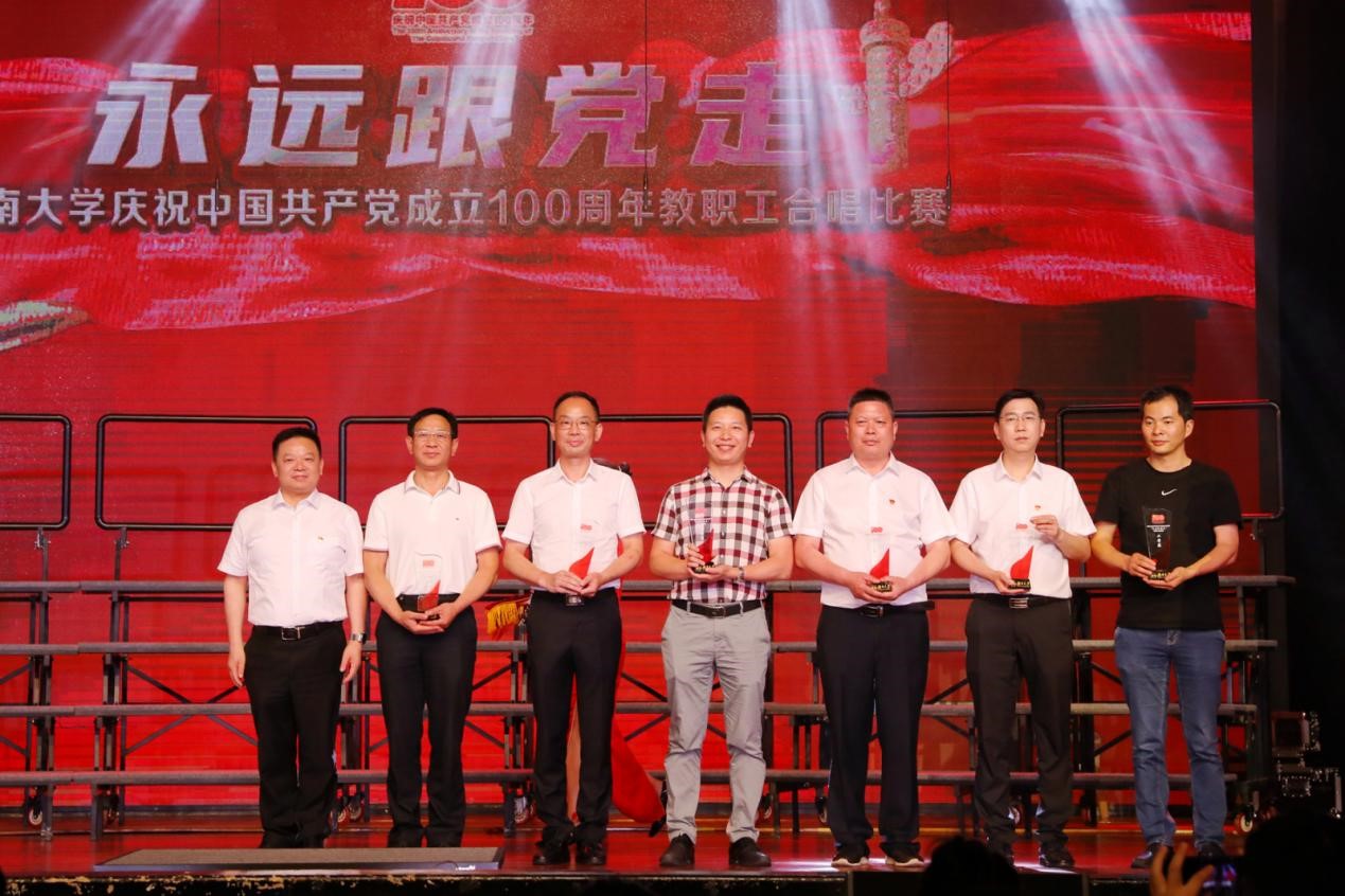 院长屈茂辉老师,党委书记易骆之老师,工会主席湛建云老师等院领导同志带领领唱人张娜老师等70余位本院教职工历经接近1个月的精心筹备和刻苦训练,在此次合唱比赛中精彩发挥、超越自我,取得了近年来同类比赛中的最高得分和总体排名,实现了五楼自拍