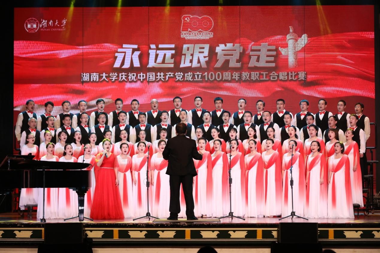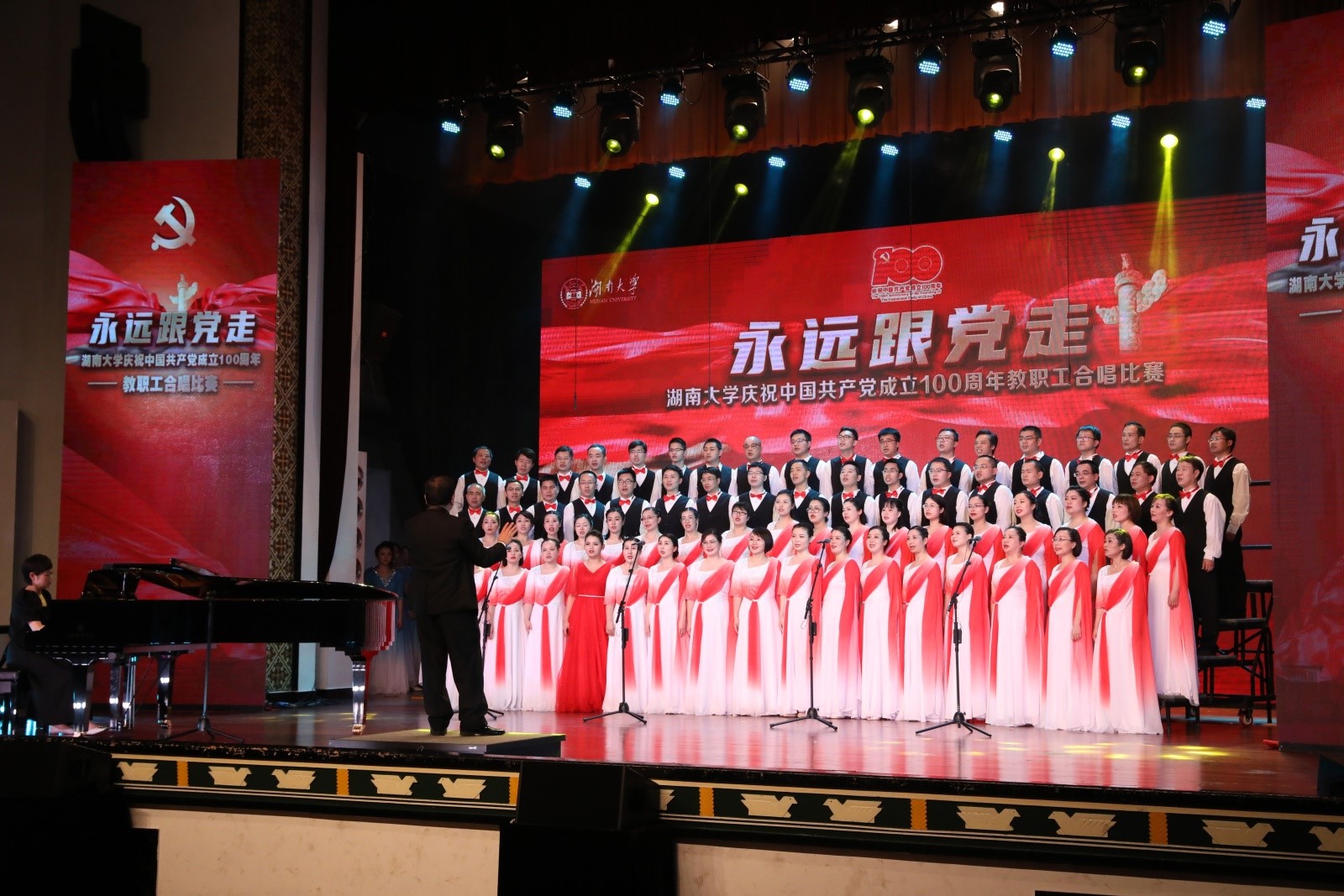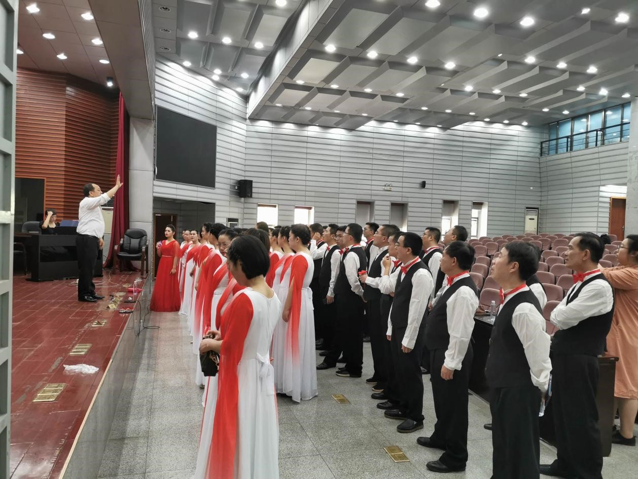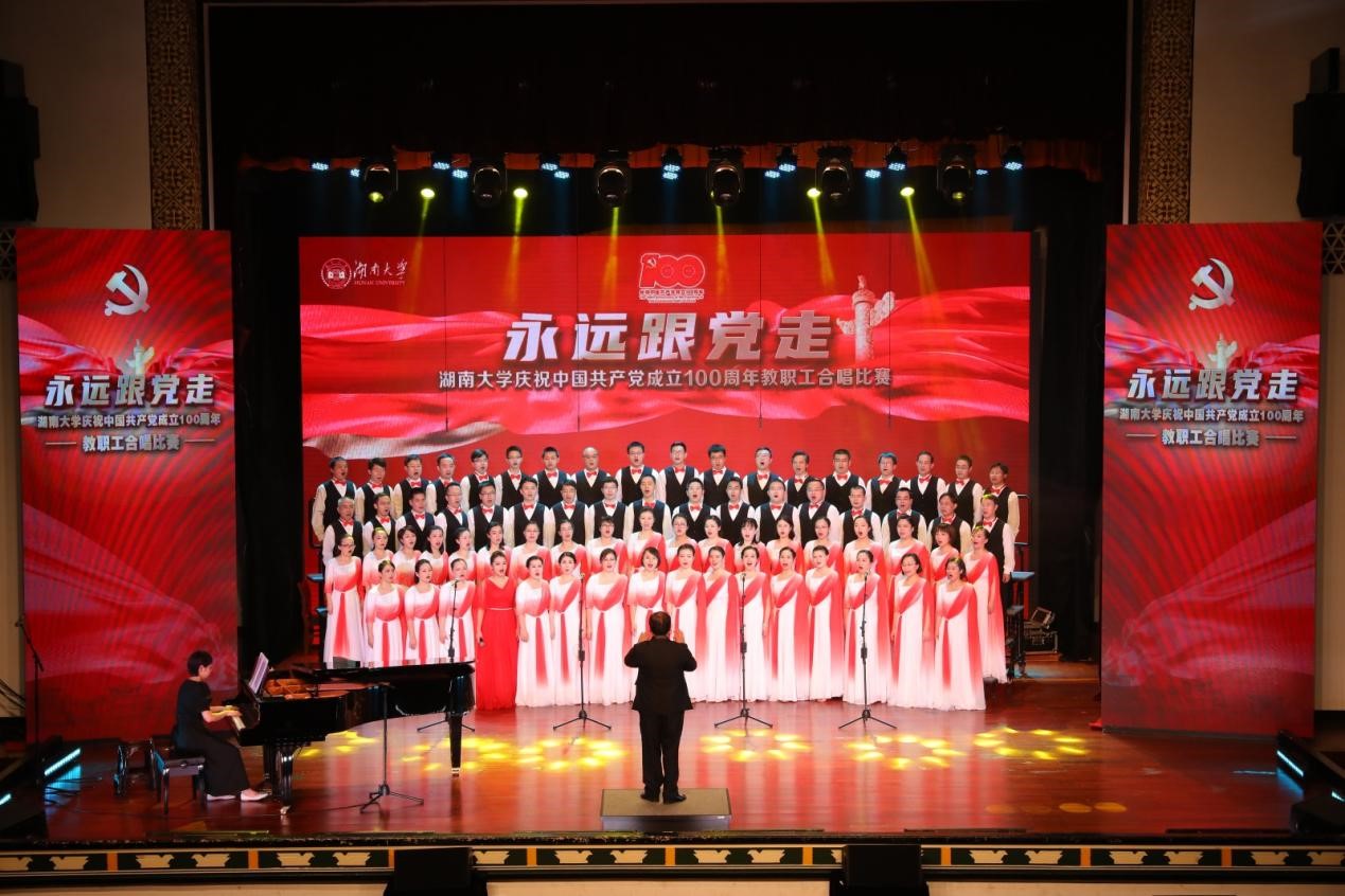 “庆祝中国共产党成立100周年教职工合唱比赛”在大礼堂拉开帷幕,34个二级部门工会、以及五楼自拍