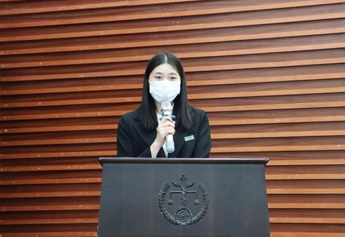 第二十届学生会执行主席郭泽锴、研究生会综合服务部负责人张婉艺分别作《五楼自拍