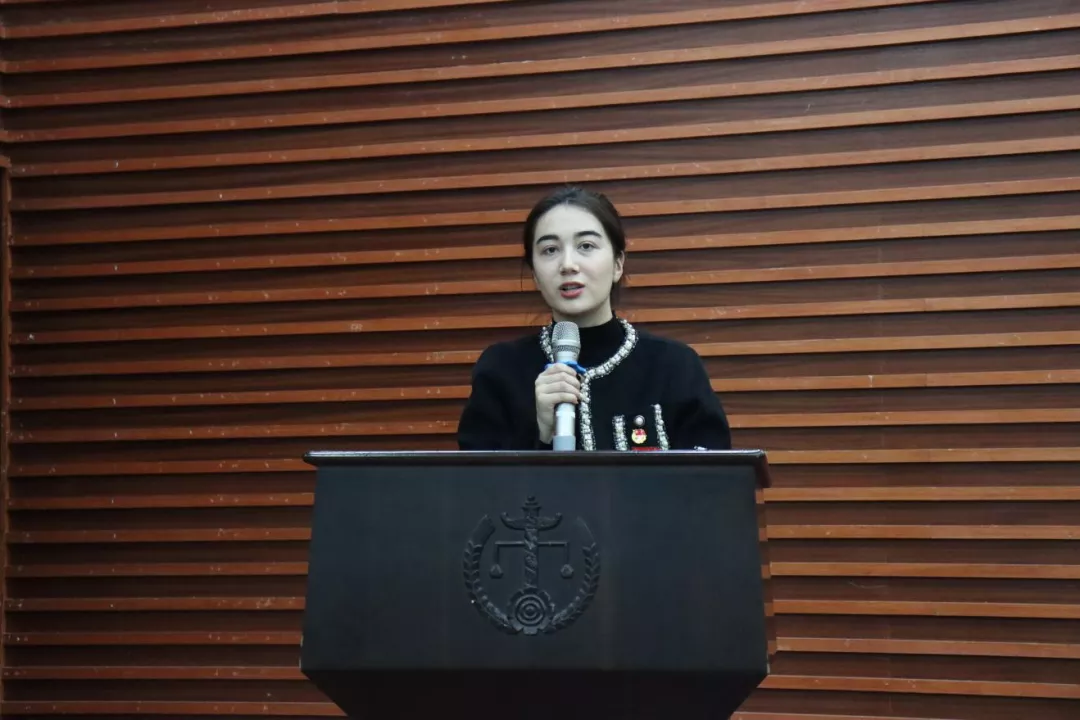 (团委委员候选人阿丽米热·卡得尔发表竞选演讲)