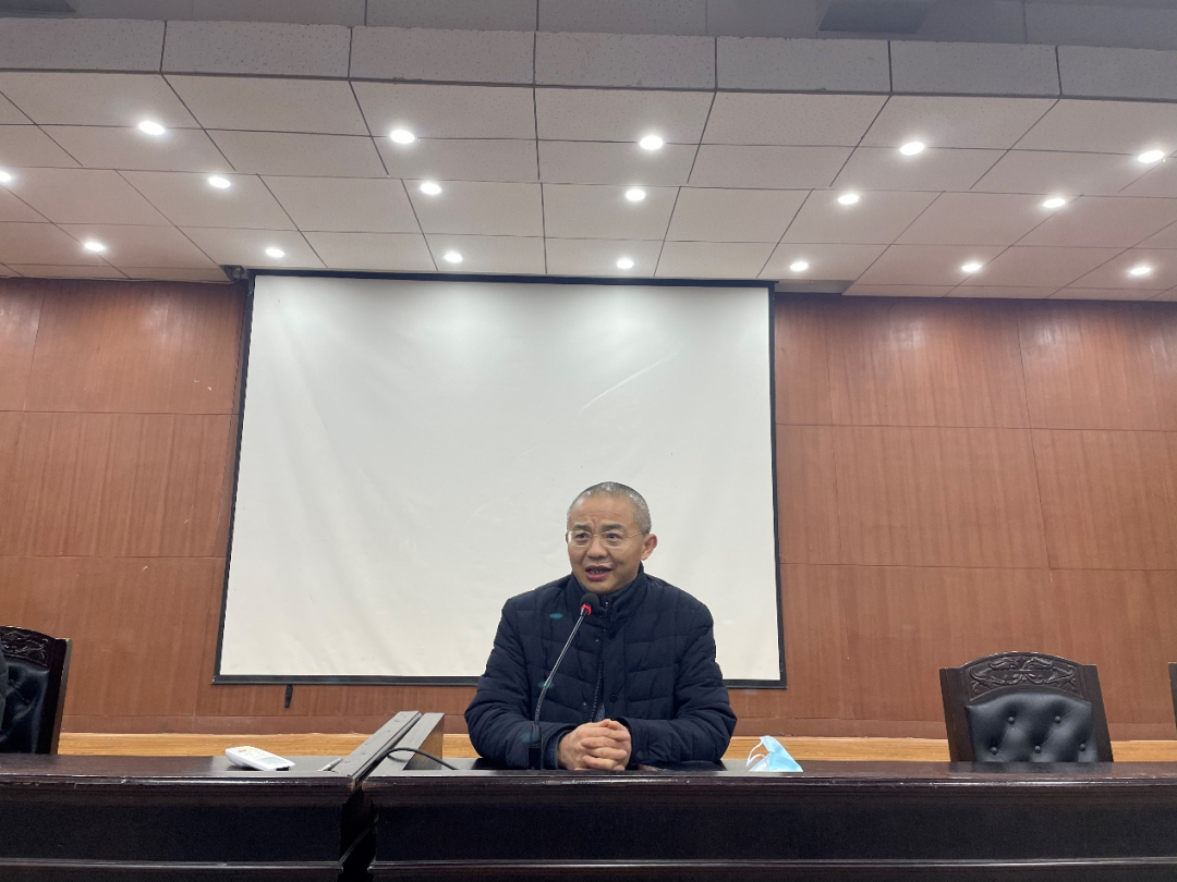 院长黎四奇作新学期工作讲话,他首先向全体教职工致以新春的问候和美好的祝愿,随后向全体教职工介绍了五楼自拍