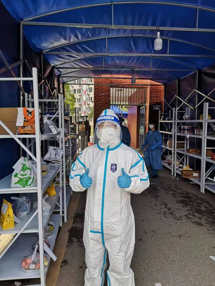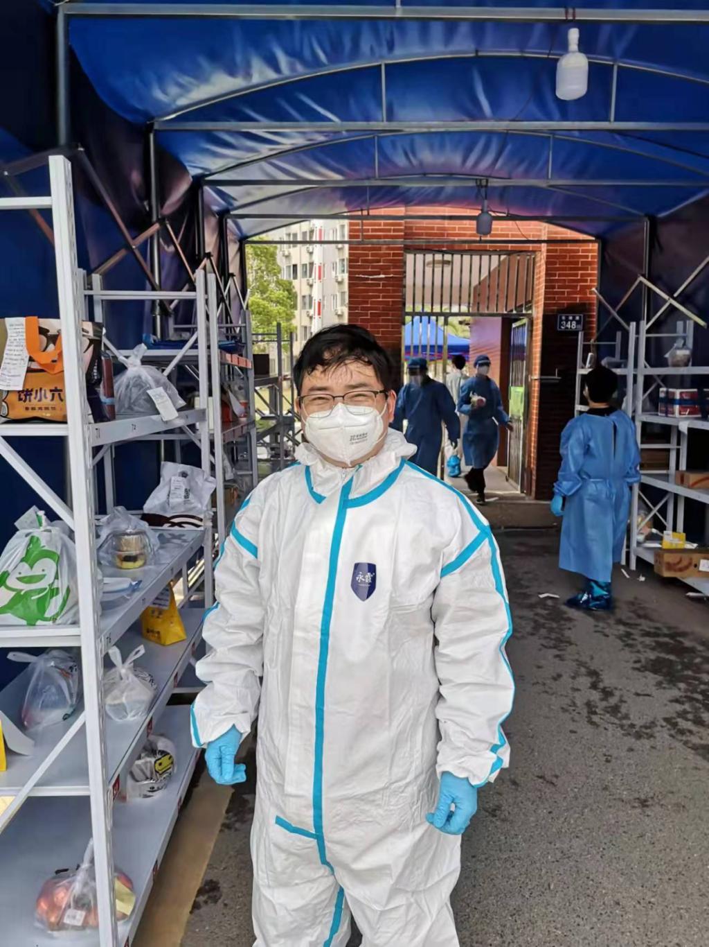 ,踊跃报名担任志愿者。每天他帮学生和志愿者取餐送餐,打扫园区卫生,协助清理楼栋卫生。按照防疫要求,学生不能与外卖员直接接触,因此需要老师穿好防护服从外卖员那里取外卖,并编号放到置物架。等学生过来取时,再取给学生。从早上八点开始,每天要取送外卖近1000份。