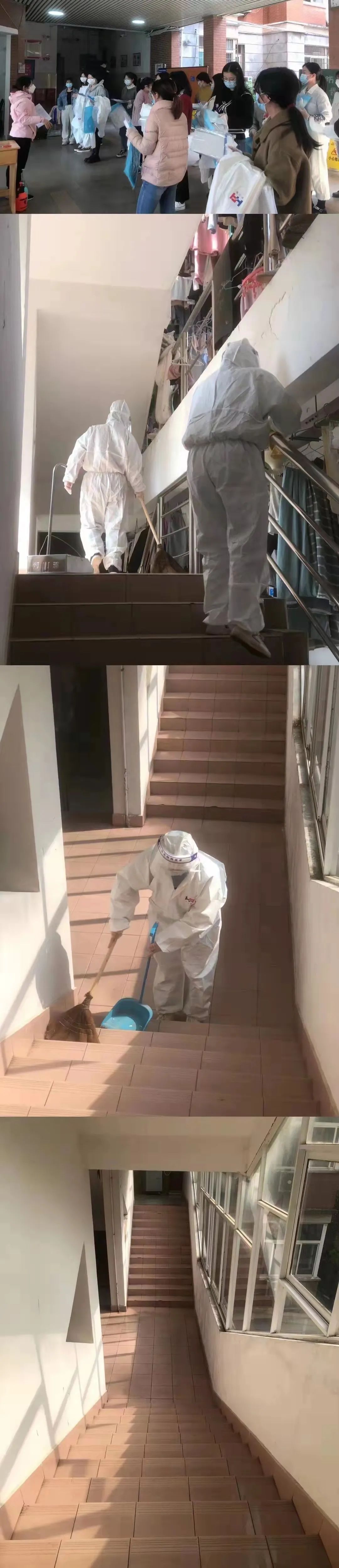 研究生志愿者们积极投身于清扫消杀活动。在充分做好个人防护措施与健康保障的前提下,按照五楼自拍