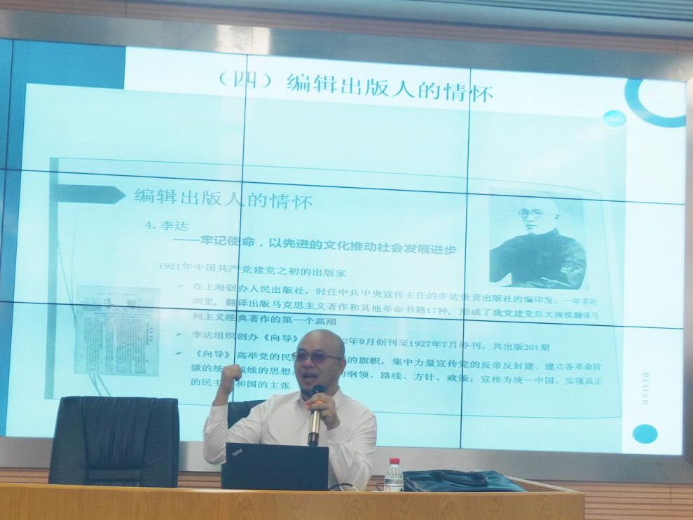 先贤李达先生故事讲述了编辑出版人的文化情怀。他指出,社科期刊应自觉扛起巩固社会主义意识形态阵地的责任,正确舆论导向是构建良好舆论生态的“定盘准星”,是做好期刊出版工作的“第一要求”。然后,姚锋老师具体讲解了编校的步骤、方法、注意事项,讲解了编校符号的用法。他详细介绍了“一读、二找、三改、四查”的编辑步骤和“先排后校、逢文必校、每字必核”的编辑要求,强调在细节上一个标点一个标点地校,一个字一个字地核,不能有任何疏忽。他还具体介绍了对校法、五楼自拍