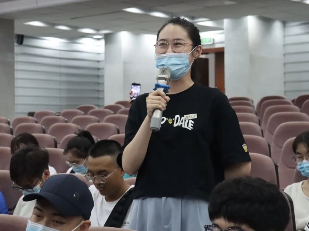 课程设计的内容及特点,特别是对于大一第一学期的课程做了重点介绍。最后,蒋老师向新生提出了几点学习建议——利用军训期间稍作学习预习、看基本法条以及网络热点讨论、重视经典人文阅读、注意学制要求、保研要求等基本规范。