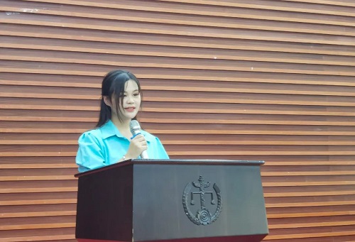 在建院二十二周年之际迎来了朝气蓬勃的你们。我是21级法律硕士纪检监察方向的符甜,非常荣幸今天能够参加我们2022级研究生新生大会,并代表老生在这里发言。首先,请允许我代表五楼自拍