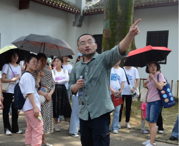 蒋海松老师带领同学们参观了文庙与书院历史展览馆,对各类藏品背后的渊源进行了深刻阐释,用历史事迹对“心忧天下、敢为人先、经世致用”的精髓特质进行解读,让同学们感受到了千年学府的历史底蕴。