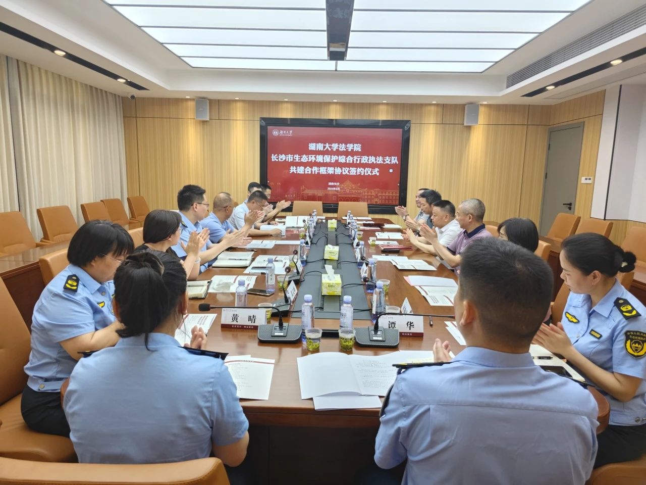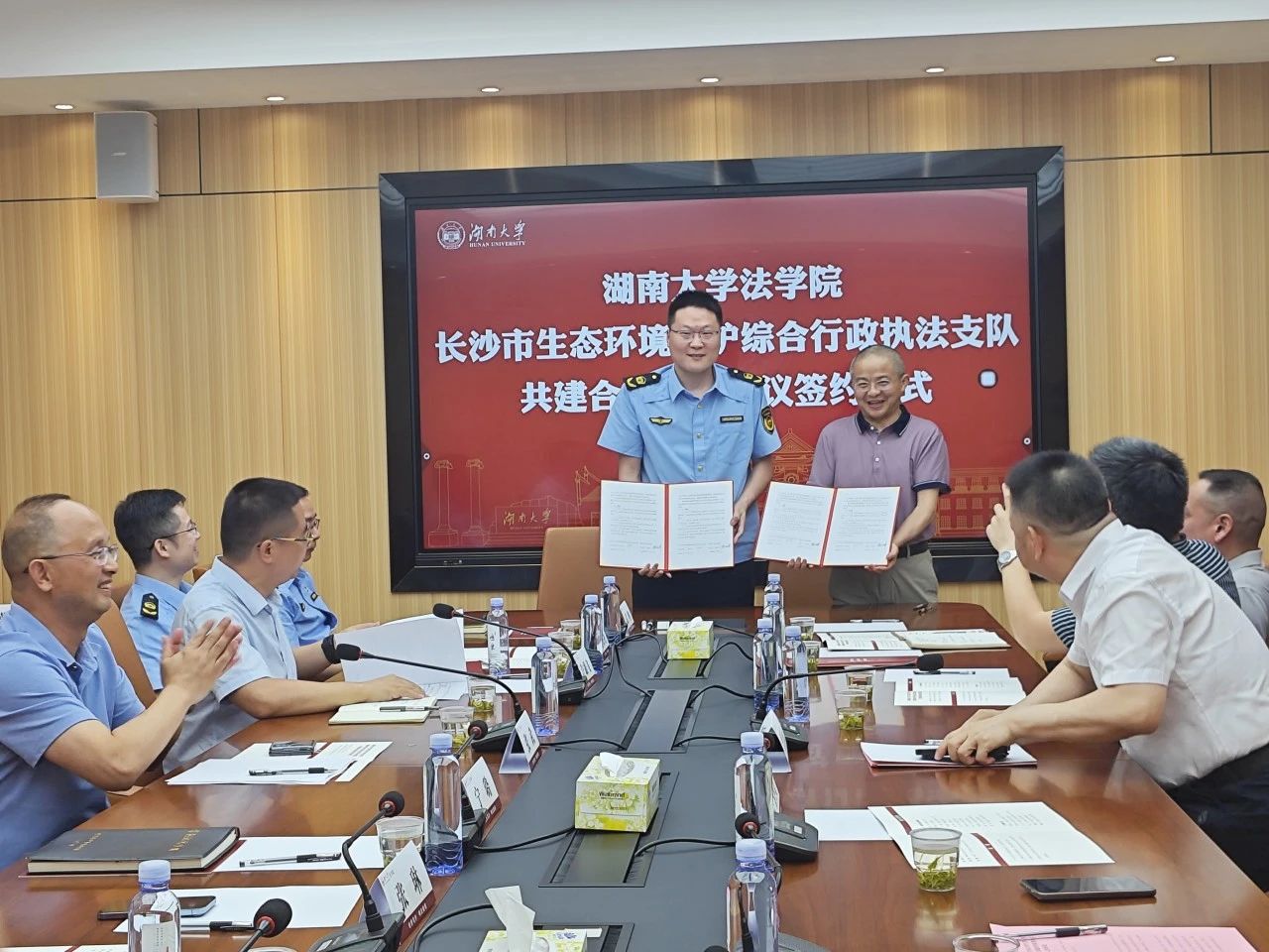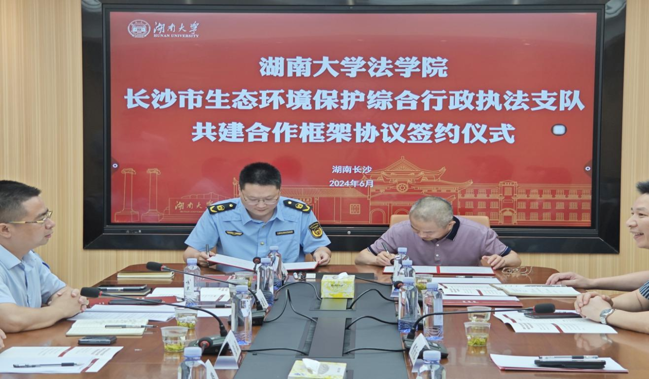 与长沙市生态环境保护综合行政执法支队成功举行了校执共建合作框架协议签约仪式。