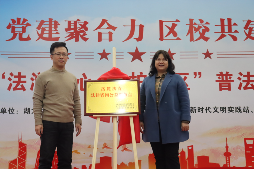 社区合作设立“岳麓法青法律咨询公益服务点”,并由刘岳峰老师与夏运枚主任共同揭牌。这支由高校师生组成的队伍,将常态化开展法律咨询公益志愿服务,以专业守护公平,用热情服务民生,为居民学法、守法、用法提供最便捷的法律服务。