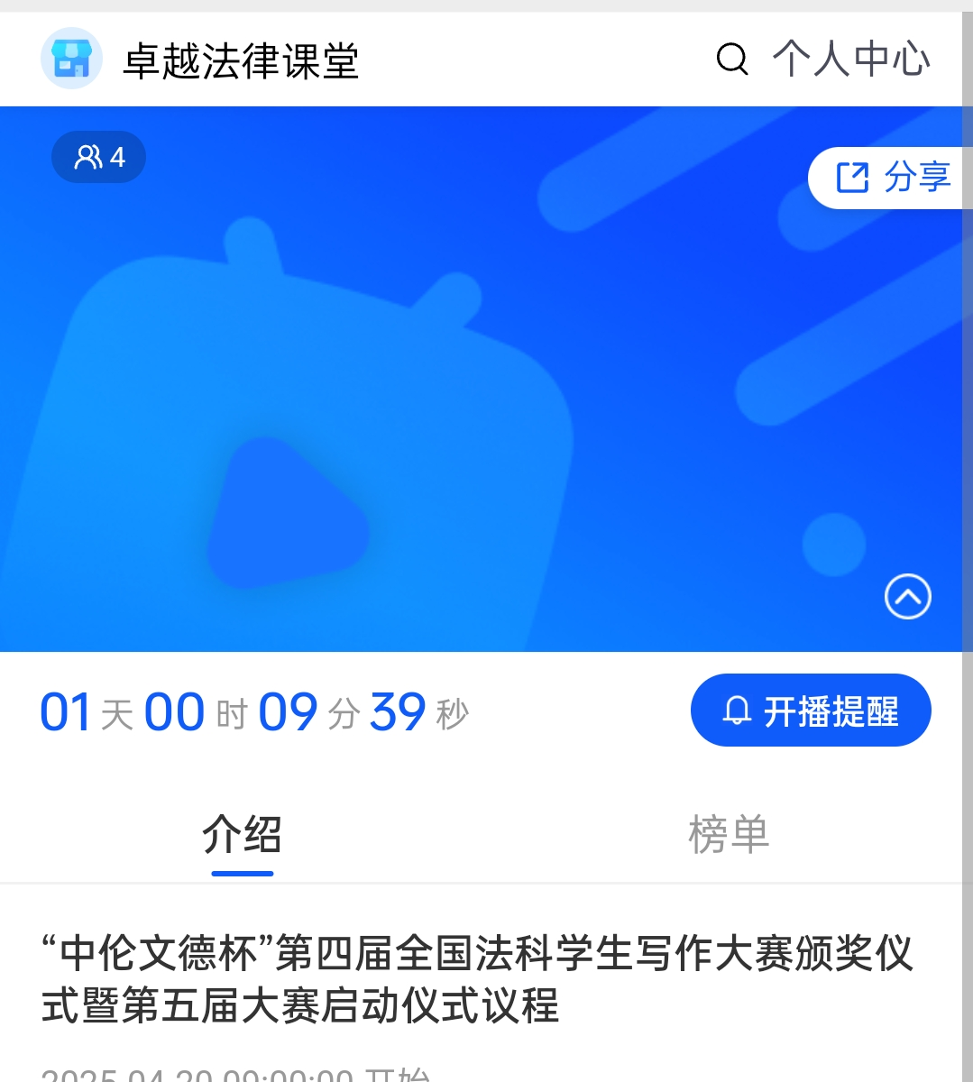 “中伦文德杯”第四届全国法科学生写作大赛颁奖仪式暨第五届大赛启动仪式将于2025年4月20日周日上午9:30——11:30在 中国科技会堂(北京)B205报告厅举行。