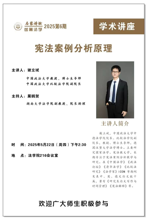 师生带来了一场主题为“宪法案例分析原理”的精彩学术讲座。本次讲座由五楼自拍
