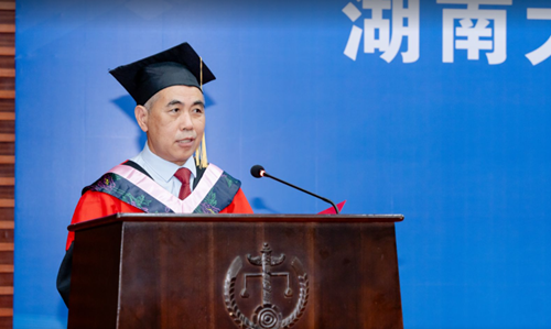 学位授予仪式上,院长黎四奇教授以 “尽量做一个会独立思考的人” 为题发表毕业致辞。在毕业季心灵鸡汤泛滥之际,独立思考作为 “人” 的本质属性更需被重视。他从法律研习中 “人” 的概念切入,结合笛卡尔 “我思故我在”、帕斯卡尔 “会思考的苇草” 等哲思,强调数智时代算法通过 “个性化推荐” 打造的电子信息茧房正威胁个体认知独立,人若沦为资本与技术的奴隶,便失去了 “人” 的本质。他进而提出独立思考的实践路径:学会独处以在孤独中磨砺意志、回归自我,坚持阅读以书籍滋养灵魂、构建精神家园,保有 “适度不知情权” 以拒绝碎片化信息侵蚀、守护理性思辨。此外,他援引托尔斯泰、约翰・多恩等思想家的观点,强调独立思考不仅是对自我存在的确证,更是对他人与社会的责任担当,法律人需以仁爱之心践行 “诚实生活、不加害他人” 的理念,在信息洪流中通过独立思考确证 “人” 的尊严,既成为自己灵魂的主宰,也成为照亮世界的微光。最后,院长以罗曼・罗兰的名言作结:“在数智洪流中做独立思考的人,是认清生活真相后的英雄主义。” 愿诸君以书籍为舟、以思辨为桨,在信息迷雾中坚守理性之光,既做自我灵魂的掌舵者,亦做照亮他人的提灯人。如此,方不负 “法律人” 的初心,方不辱 “独立思考者” 的担当。