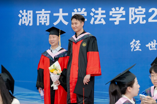 2025年学位授予决定》,对蒋昊君等14位法学博士、蔡夏琳等317位硕士研究生及金冬霖等184位本科生作出授予学位的决定。随后,黎四奇、屈茂辉、谢佑平、郑鹏程、肖海军、姚诗、喻玲老师为全体毕业生一一正冠拨穗、颁发证书并合影留念。