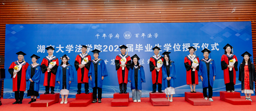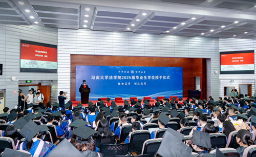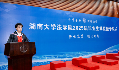 这座象牙塔,真正推开人生当中的那扇门。也许现实生活和我们理想中的法治环境现在仍存有差距,但见过阴影却依旧坚定地站在光里,也许就是学习法学的意义和使命。无论去向何方,请大家都要带着“实事求是,敢为人先”的校训和“经世笃学,明法致用”的院训,挥法律之利剑,持正义之天平;存岳麓之底蕴,守政法之圣洁,为在法治轨道上推进中国式现代化贡献青春力量。愿我们带着母校的底气,在更辽阔的天地发光发热。