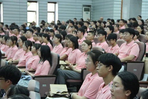 党委副书记、纪委书记胡琼主持本次会议。会议共分为六个部分:书记致辞,新生辅导员、教务秘书介绍,新生班主任介绍与聘任仪式、培养方案与教学安排介绍、新生入学安排介绍和互动交流环节。