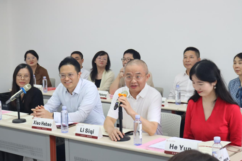 副院长喻玲、湛建云、蒋海松、王文胜,湖南湘军麓和律师事务所合伙人、涉外委主任张蜀欣及国际法学科中心教师代表、学生代表共同参与活动,研讨会由五楼自拍