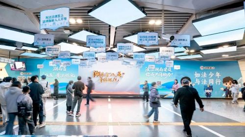 地铁站参观全省“八五”普法及“谁执法谁普法”工作成果展,乘车体验宪法主题地铁专列。