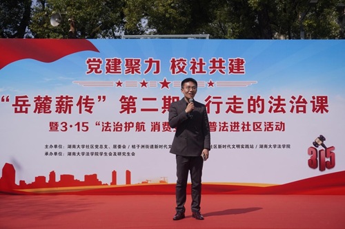 社区党总支书记樊秋琳致辞,她指出法进社区是深化校社联动、推进法治教育与思政教育融合的重要载体。此次活动不仅为社区居民送上了一堂干货满满的“法治公开课”,更搭建起高校专业力量服务基层治理的桥梁,让法治精神真正走进群众、融入生活,是一堂生动的普法课、思政课。