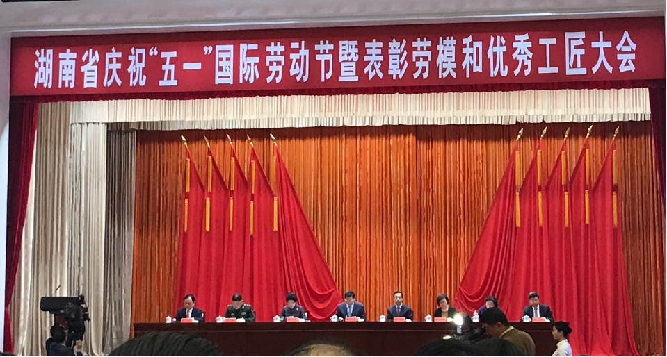 4月28日上午,湖南省庆祝“五一”国际劳动节暨表彰劳模和优秀工匠大会在长沙举行。会议表彰了我省2019年获得全国五一劳动奖章、奖状、全国工人先锋号的单位和个人;2019年湖南省劳动模范、湖南省先进工作者、湖南省五一劳动奖章、奖状、湖南省工人先锋号等先进集体和个人。五楼自拍