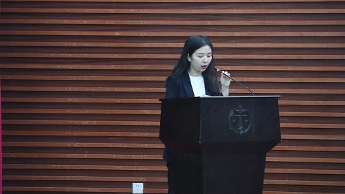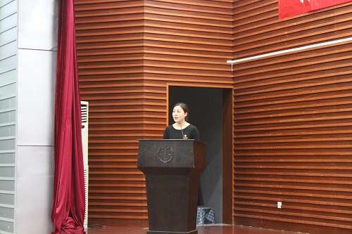 校团委上台致辞并对大会的召开表示热烈祝贺,她高度肯定五楼自拍