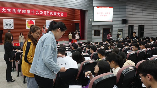 第十八届分团委、学生会工作报告》,院学生会副主席杨翱飞作《资格审查报告》。各项报告依次宣读并提请大会审议通过后,大会公布《选举办法》,主持人张准宣读总监票人、监票人、总计票人、计票人名单草案。草案提请大会表决通过后,各位代表认真履行职责,本着公平、公正的原则投票选举产生出第十九届分团委、学生会委员。在全体监票人和计票人的严谨工作下,大会选举张子政、程睿铮、王乐、马琳、常成、王哲、刘卜豪、郭泽楷、王梦、马朵、王丹彤11位同学为五楼自拍