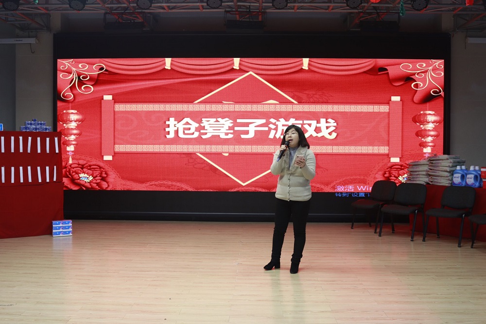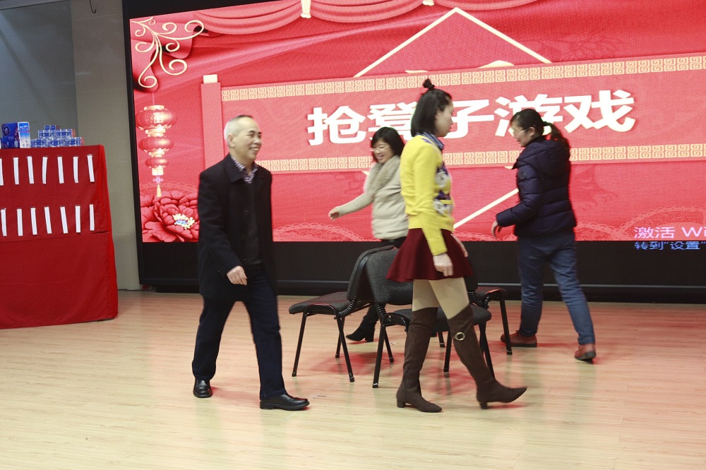 在到场观众的掌声中,主持人王浩宣布联欢会游戏环节正式开始。晚会共设置了三个游戏环节,均得到老师们积极踊跃的参与。抢凳子游戏中,老师们或听音乐以矫健身法取胜、或观距离以绝对实力抢夺位置“制敌”,特别在亲子组同台竞技里,小朋友以“初生牛犊不怕虎”的气势成功将家长组淘汰,一展“雄姿”;物品搜集游戏环节中,全场观众齐齐动身,在场内搜寻主持人提出的钢带手表、茶叶、橘子、蓝色外套等种种“珍奇物品”;猜灯谜环节中,教师们更是开动脑筋,猜字、猜词、猜成语,动物、地名、日用品,五花八门,应有尽有,将拆字、会意等种种方法用到极致……三个游戏环节最终送出了70余份奖品,游戏过程中,还穿插了老师与小朋友的精彩表演,雷玉琼老师为大家带来了优美的歌曲演唱《都是夜归人》、小朋友为大家带来了街舞表演《good boy》赢得了观众的热烈掌声。