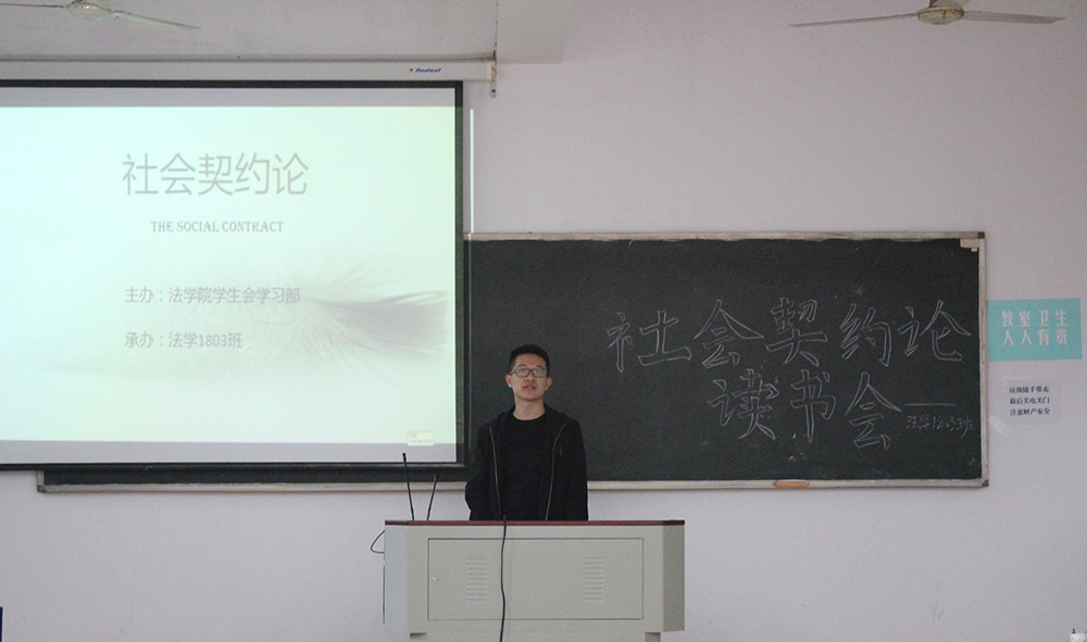 学生会学习部主办,法学1803班承办,选取让·雅克·卢梭的《社会契约论》作为阅读对象,邀请到五楼自拍