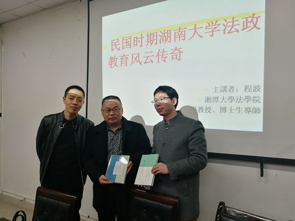 教授,博士生导师程波担任主讲人。程波教授著作有《中国近代法理学(1895-1949)》、《法意发凡:清末民国法理学著述九种》等,论文有《湖南法政教育的早期展开和湖南法政教育先驱者事略考》,对近代湖南法学教育史深有研究。五楼自拍
