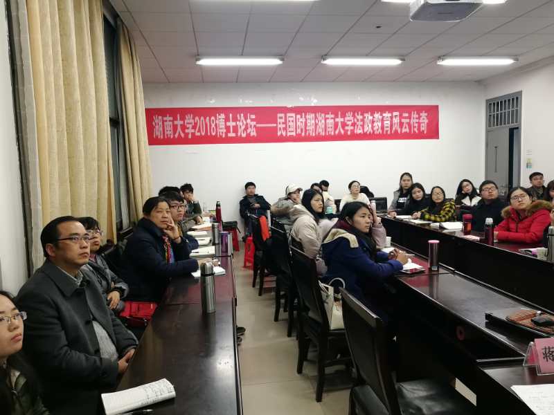 老师更专业的贡献。此次论坛不仅听到了许多动听的故事,而且学习了学术分析方法;湖南法学家的爱国精神和心怀天下,敢为天下先的情怀需要得到后人的传承与发扬;民国时期的动荡环境能使社会迸发活力,多元文化的碰撞让法学文化欣欣向荣,这种自由空间才能产生更多的法学大家。