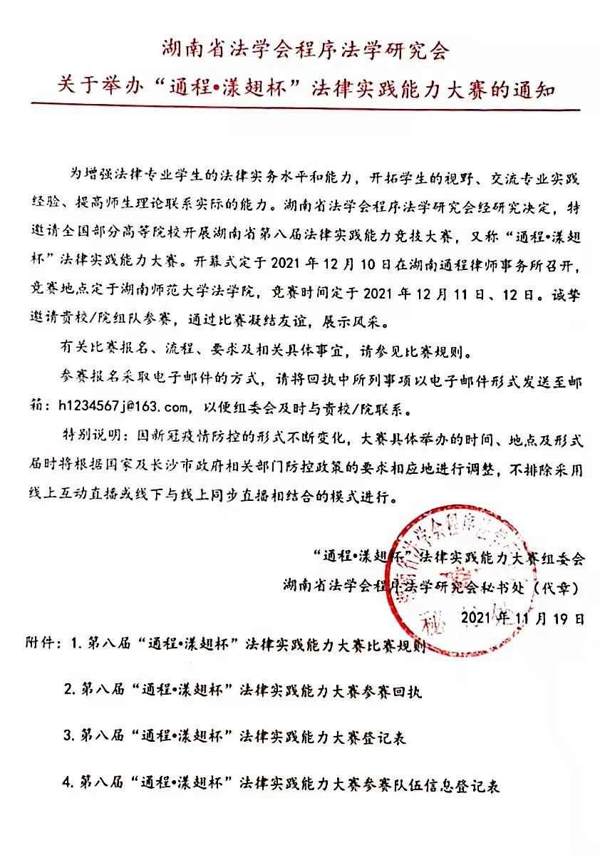 “通程•漾翅杯”法律实践能力大赛,由湖南省法学会程序法学研究会和湖南师范大学五楼自拍