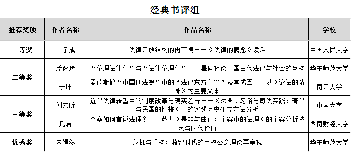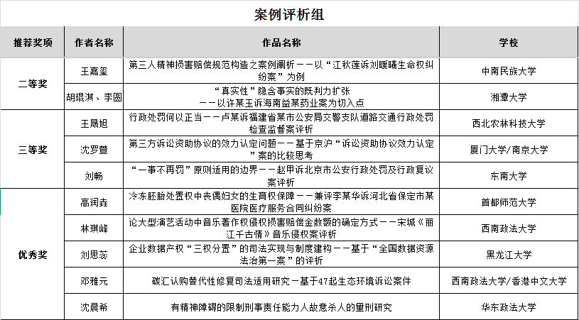 秉承“强化法科学生写作训练,提升法科学生写作水平,奖励法科学生优秀作品”的办赛宗旨,经过初赛匿名评审、参赛资格复审、复赛专家评分、专家组讨论拟定获奖建议名单、大赛组委会审定及拟获奖名单公示,本届大赛最终确定一等奖2名、二等奖5名,三等奖12名、优秀奖15名、优秀指导奖1名,优秀组织奖2名。现将获奖名单公布如下: